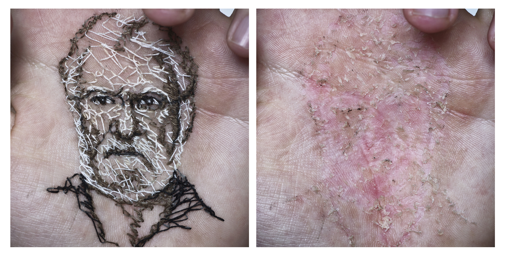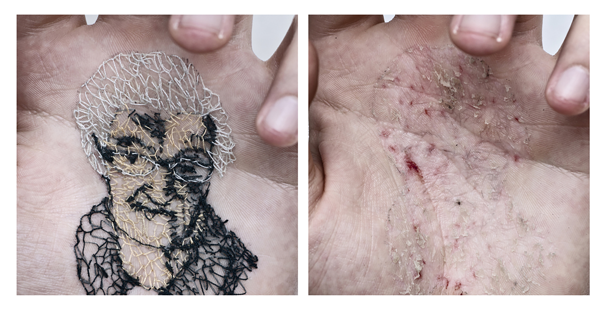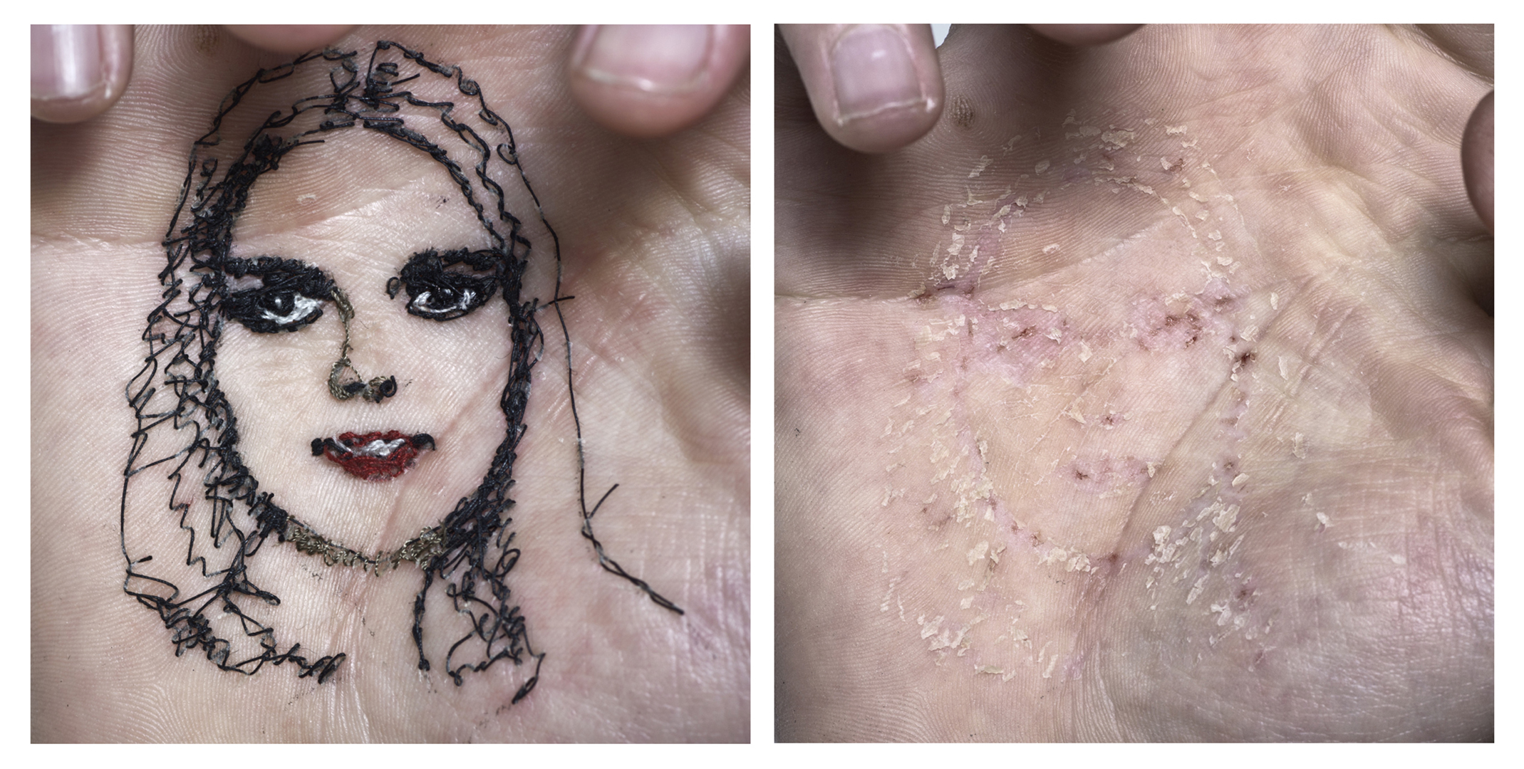 A flor de piel es un proyecto artístico autobiográfico en el que Catá utiliza su cuerpo como diario viviente. A través de cosidos reales en la palma de su mano, Catá retrata los rostros de personas significativas en su vida: familia, amigos, parejas y profesores. Estas personas, que han dejado una huella en su existencia, se entrelazan con su historia personal, construyendo una narrativa que continuará hasta que ya no queden hojas sobre las que escribir.